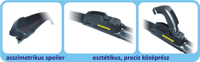 • Főbb műszaki jellemzők: asszimetrikus spoiler, kiváló minőségű grafitos bevonatú gumiél, esztétikus középrész ⇒mely a kampós típusú ablaktörlő karokhoz illeszkedik.