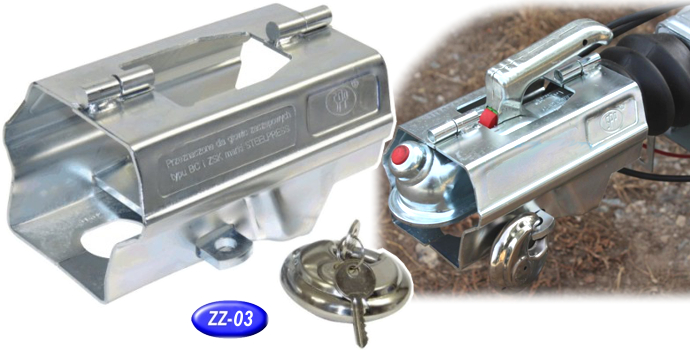 Megakadályozza a gépjármű vonóhorgára akasztott utánfutó illetéktelen leakasztását vagy az utánfutó vonógömbre akasztását. Ez a lopásgátló masszívabb kialakítású mint a ZZ-02 típus, eltávolítása csak a fém elemek vágásával vagy komolyabb mechanikai roncsolásával válik lehetségessé. Alkalmazható a legtöbb normál terhelhetőségű lemezteszű vonófejhez. 2db kulccsal forgalmazzuk, de normál lakattal is együttműködik.