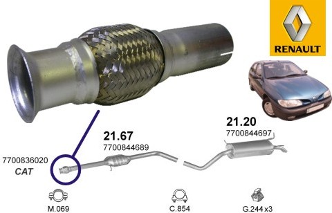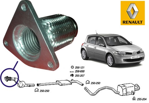 Ez a rezgéscsöves javítóelem a Renault Megane 2 1.4i16V 2002/10-2004/08 1.6i 2002/10- típusok leömlőcsővel egybeépített katalizátorának javítására szolgál. A gyári kialakítás olyan, hogy a karima a rezgéscső tövére szögben van hegesztve, ezért javítása egyszerű rezgéscsillapító cső beépítésével igen körülményes.