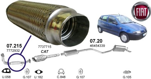 Ez a rezgéscsöves javítóelem a Fiat Punto 1.1 1993/01-1999/08 leömlőcsövének javítására szolgál. A gyári kialakítású elem a képen látható javítóelemnek megfelelően nem kör keresztmetszetű, hanem ovális.