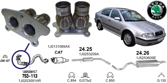 Ez a rezgéscsöves javítóelem a Skoda Octavia 1.6i rezgéscsővel egybeépített elem javítására szolgál, olymódon, hogy a konstrukciósan gyenge egy rezgéscsöves kivitelt cseréli le a Golf 4 -esnél megszokott kialakítású elemre. Ez azzal az előnnyel jár, hogy az így átakított Y-cső sokkal jobban bírja az üzemi igénybevételt, mintha a gyári rezgéscső elemet cserélnék ki.